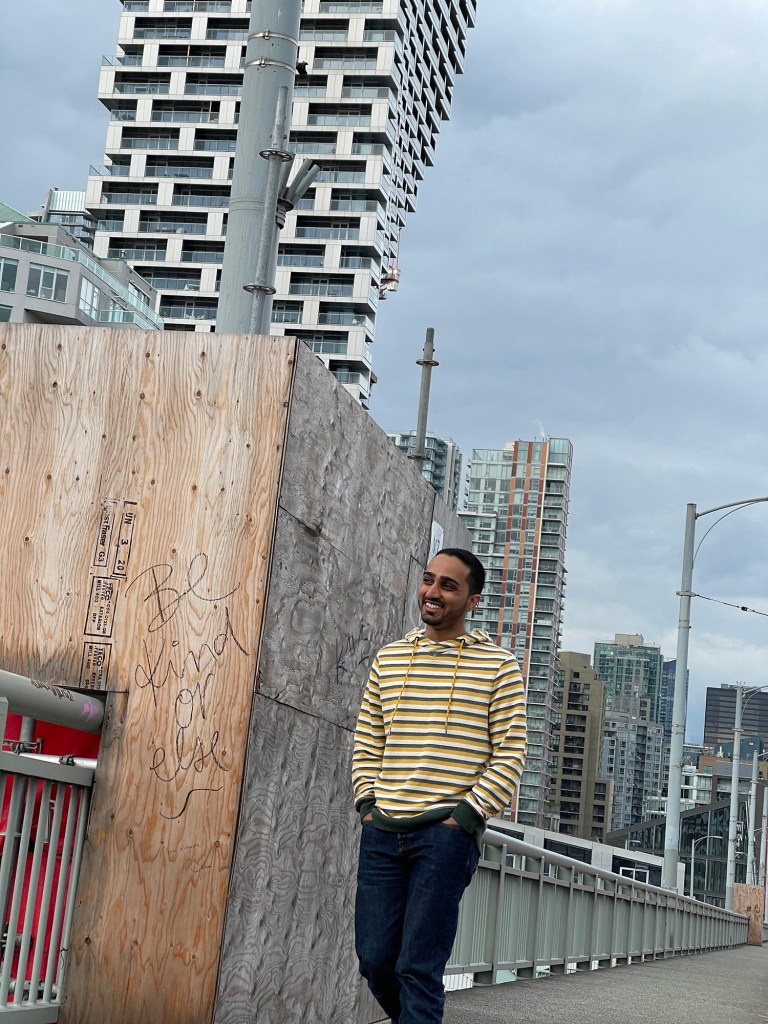 Kayden Bhangu on Granville Street Bridge in Vancouver