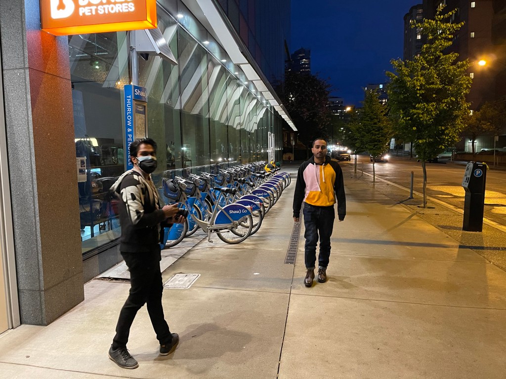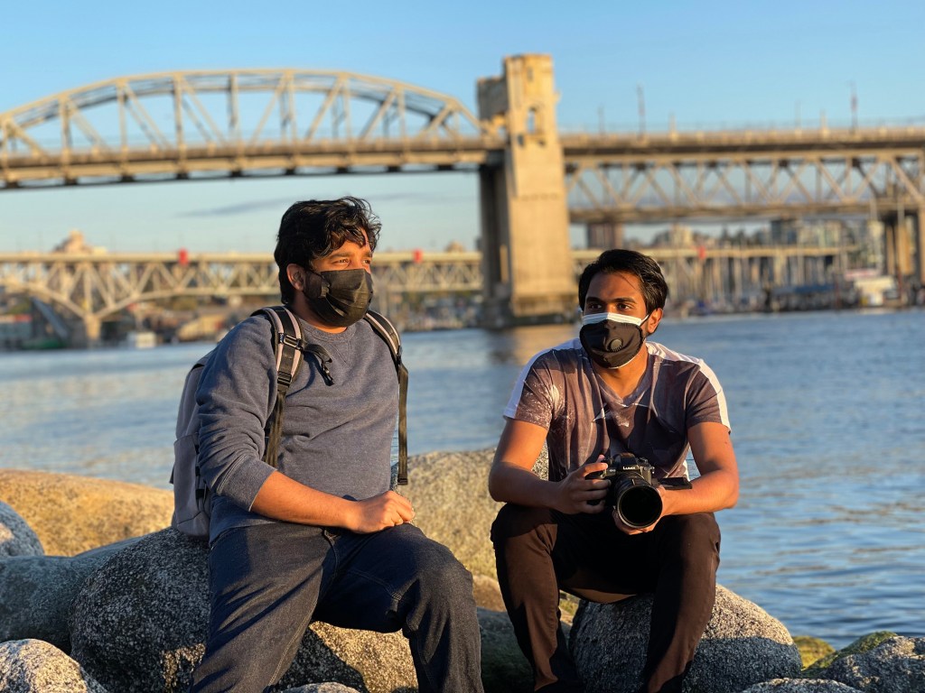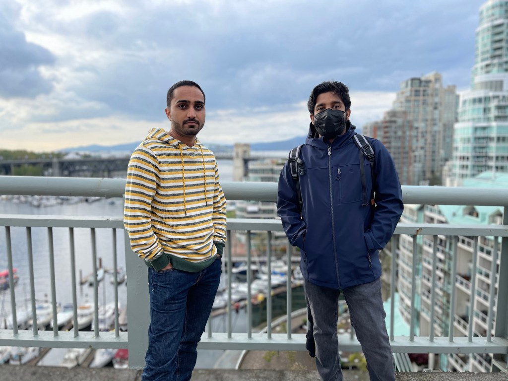 Kayden Bhangu (left) with Vinay Giridhar on Granville Street Bridge in Vancouver