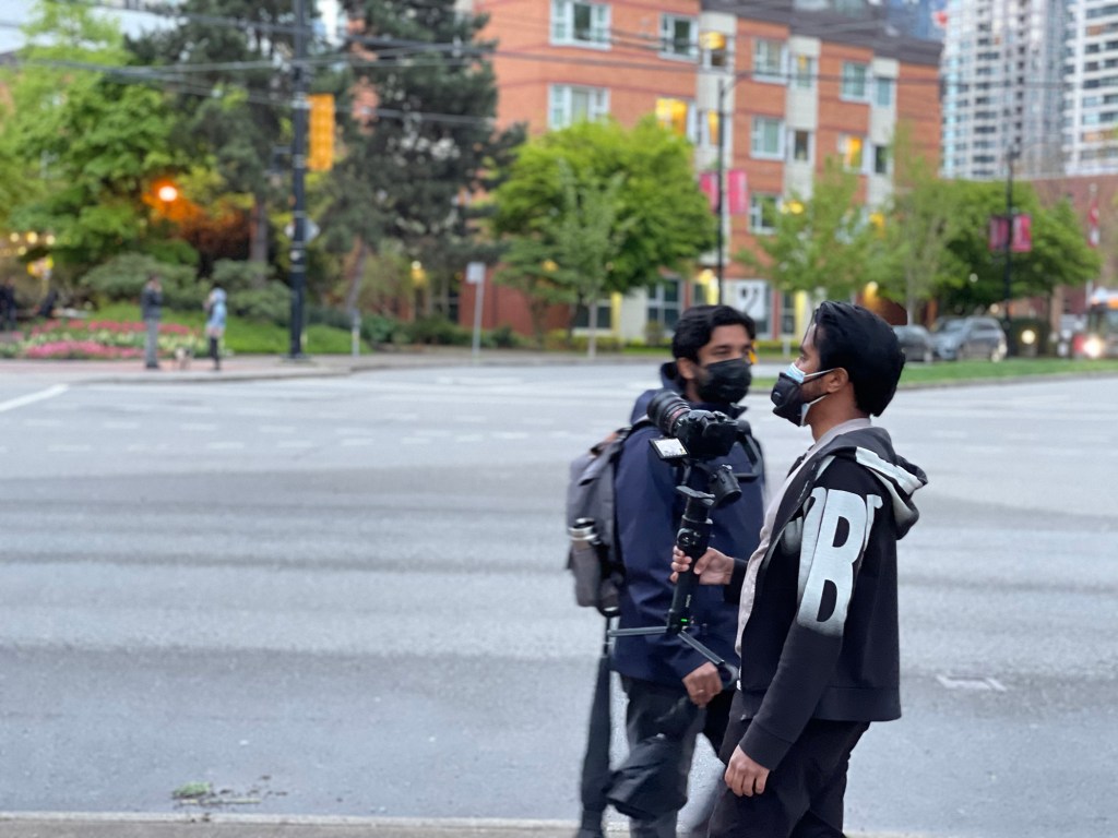 Director Vinay Giridhar (left) with Kayden Bhangu in Vancouver